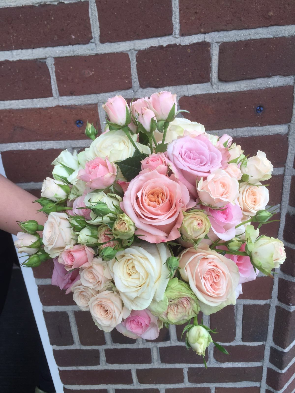 Bruidsboeket rozen & trosrozen pastelEen mooi rond bruidsboeket met alleen maar pastelkleurige rozen en trosrozen.